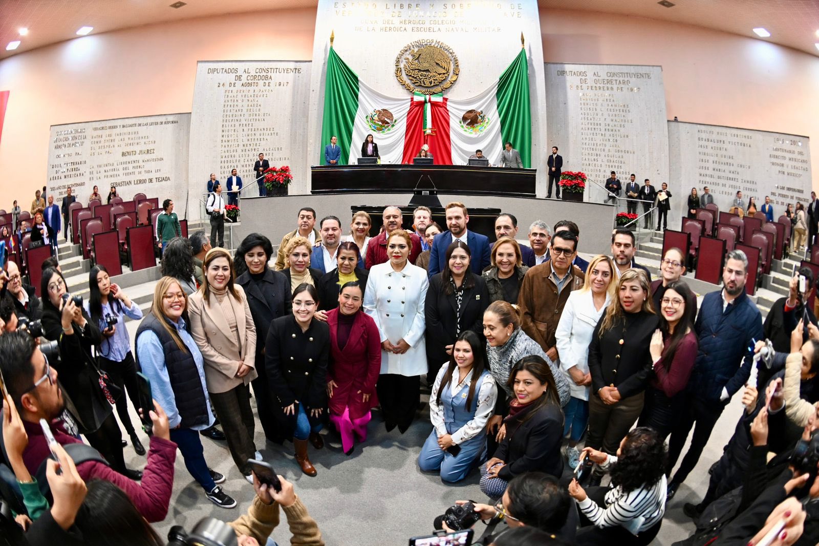 Xalapa, Ver.- Autoridades electas de Coatzintla asistieron al primer informe de actividades de la gobernadora de Veracruz, Rocío Nahle García, un hecho histórico y sin precedentes por tratarse de la primera mujer en gobernar el estado.