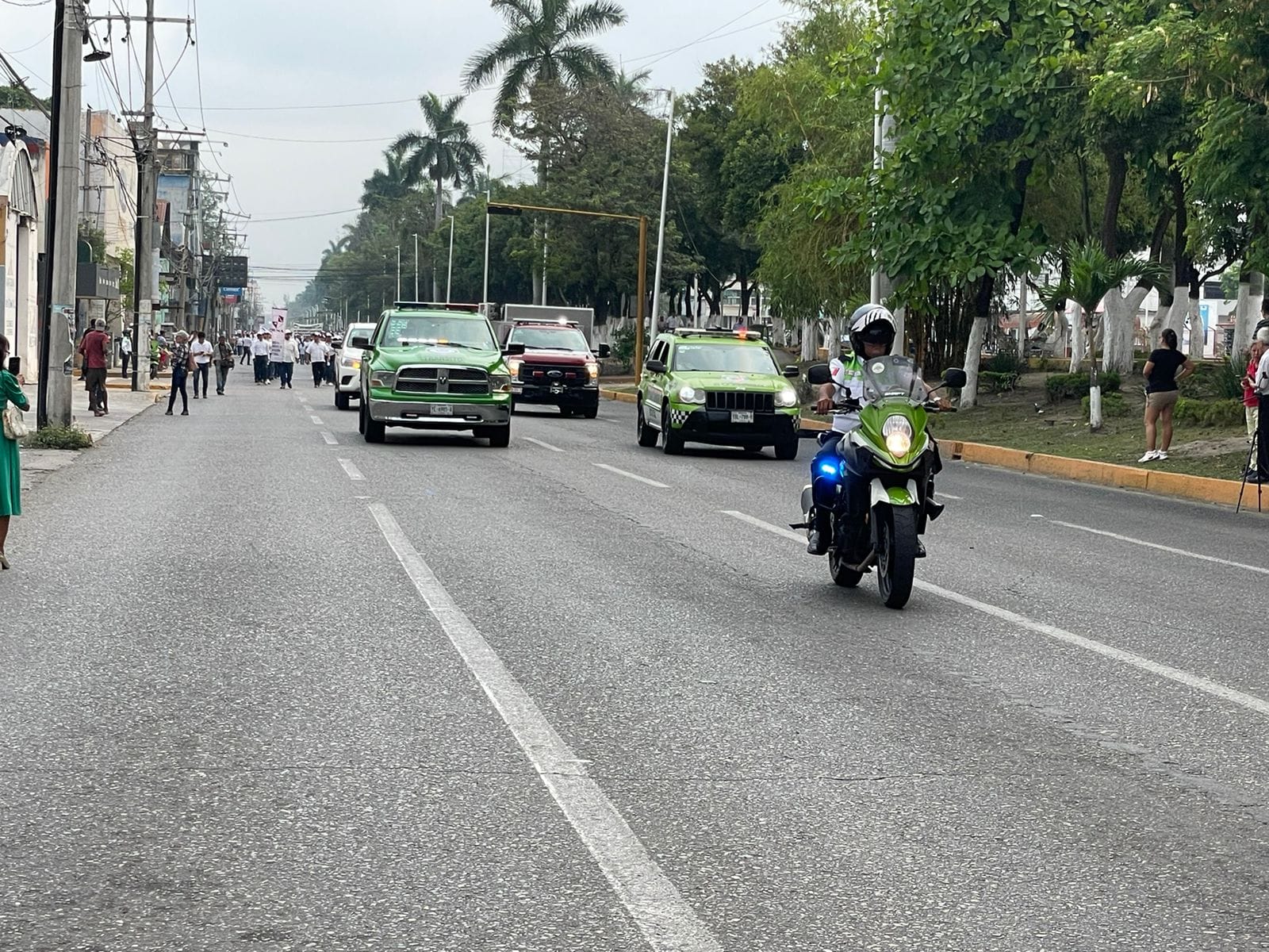 Indicó que en el desfile también estuvieron participando con dos unidades y una motocicleta, que fueron las que arrancaron el desfile, por lo que señaló que durante el recorrido se estuvo brindando vialidad para que los participantes pudieran realizar sin problema alguno.