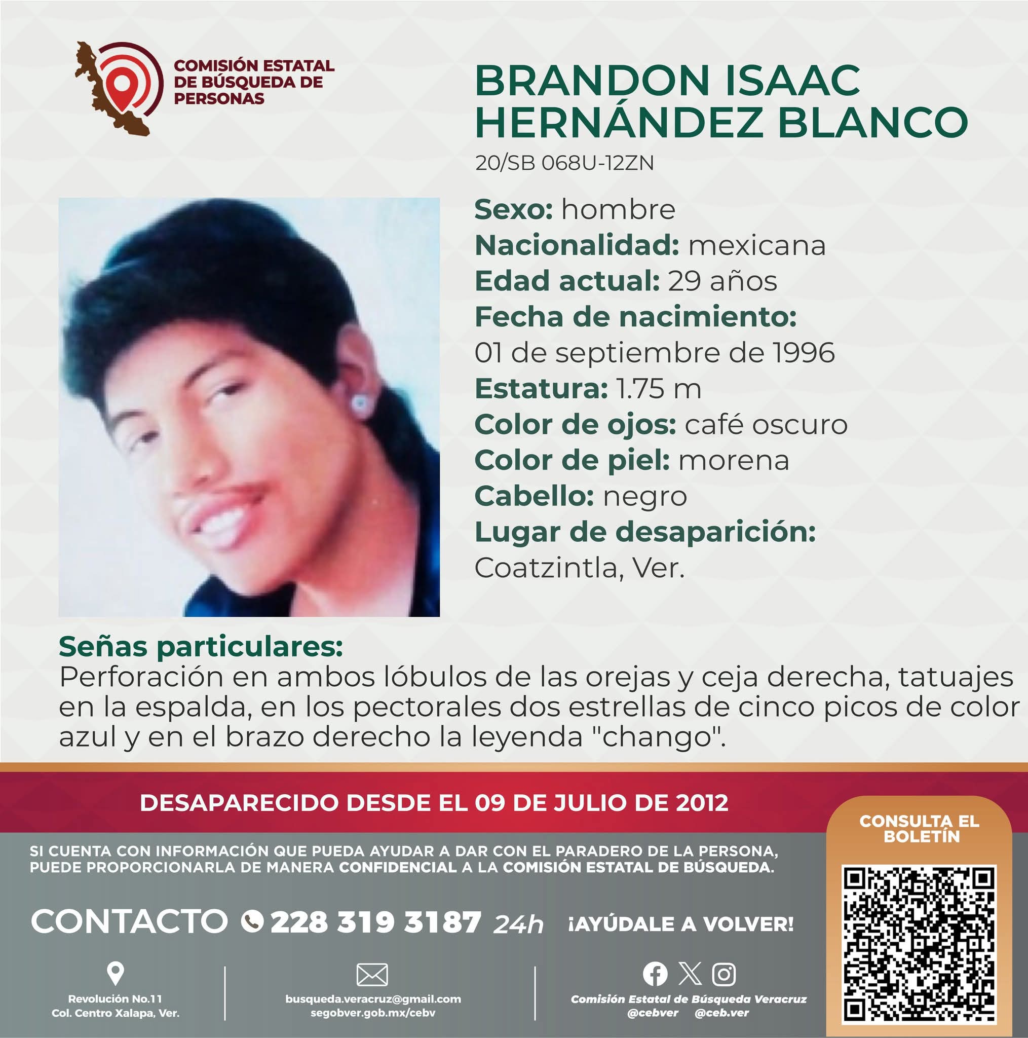Pero su localización fue gracias a que su madre, Enriqueta Blanco, reconoció un tatuaje muy característico que tenía Brandon, mismo que estaba registrado en una ficha del libro de INI de Poza Rica.